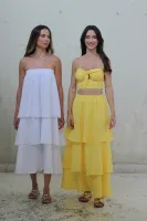 O Conjunto Sofia é a definição de versatilidade. Com uma saia que pode ser usada como vestido e um top com alças removíveis, este conjunto de algodão é atemporal e estiloso.